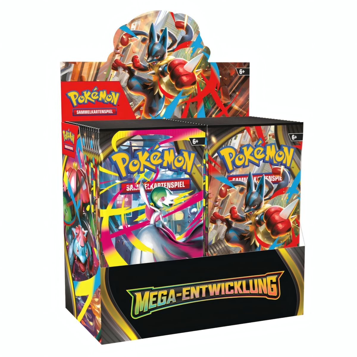 Das Mega Entwicklung Display des Pokémon-Sammelkartenspiels enthält: