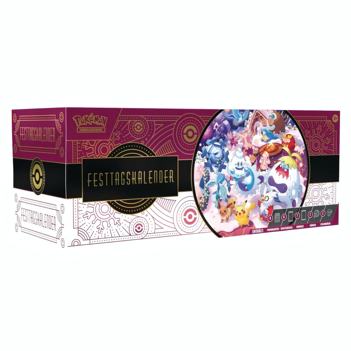 Der Pokémon Festtagskalender 2025 des Pokémon-Sammelkartenspiels enthält: